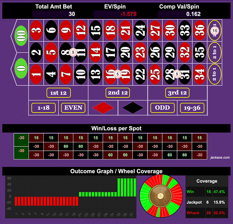 - Bet $15 on a column and $5 on 3 uncovered splits.