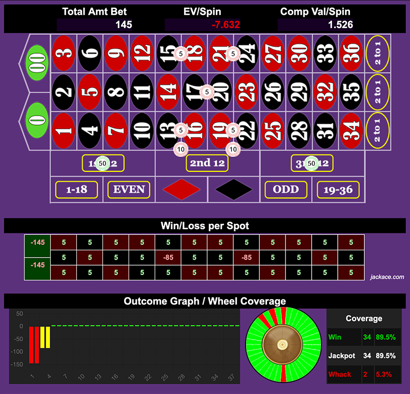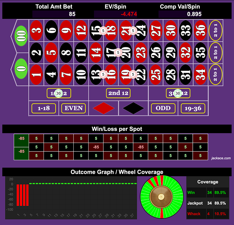 $145 | -$135 | 3:06 | We could have saved $60 here by not betting on 36 numbers. |